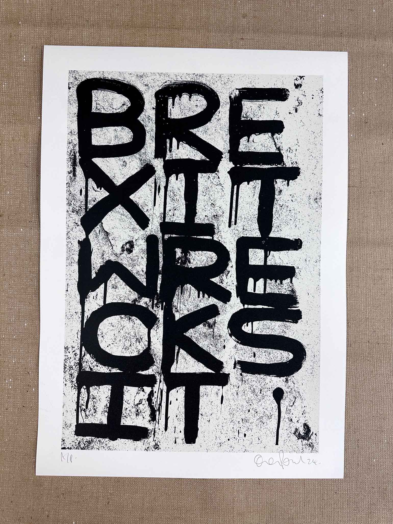 Brexit Wrecksit Off White - A hand-pulled screenprint from the archive. Political statement in subtle off-white tones.