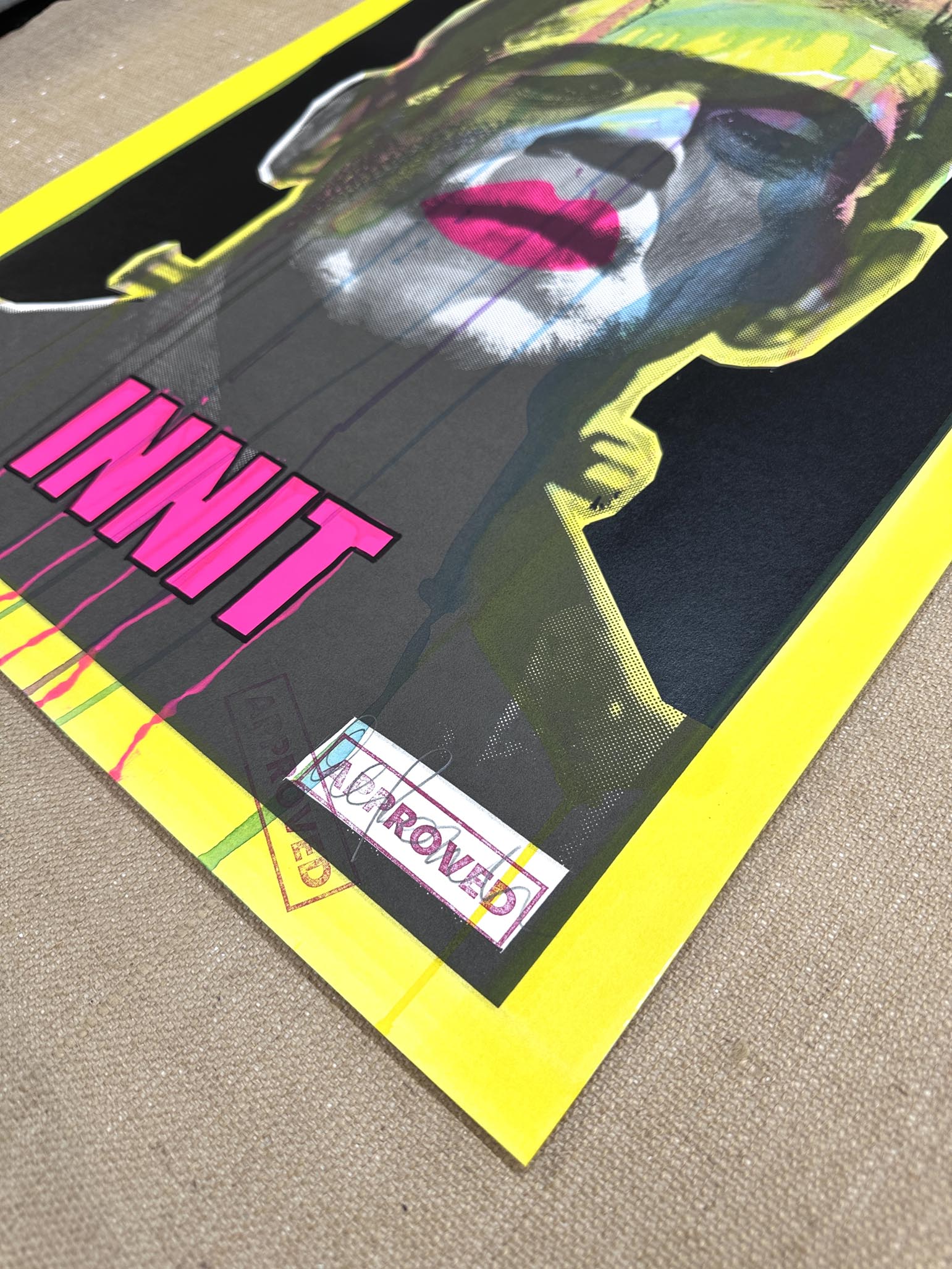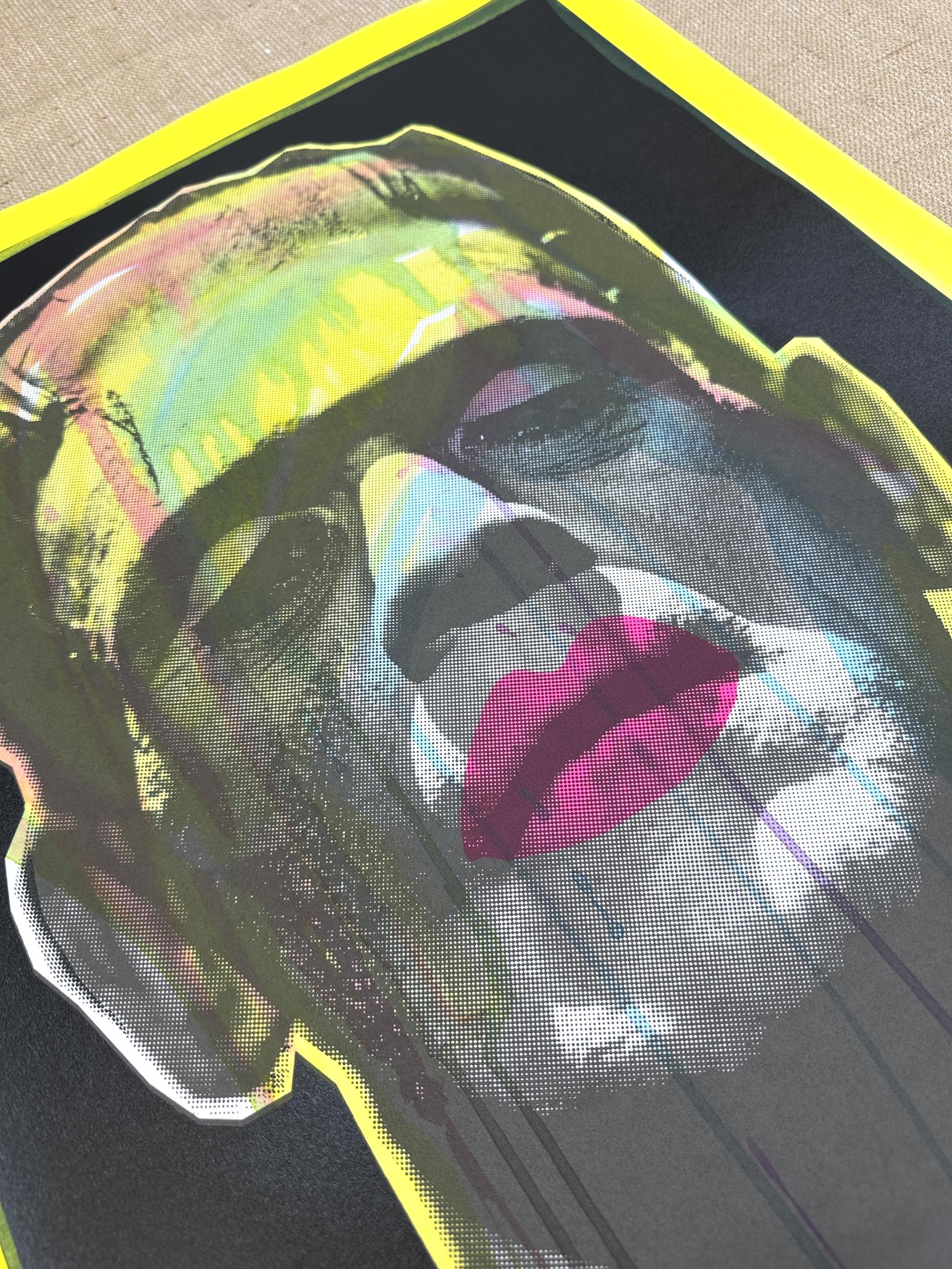 One-off original screenprint with ink wash, gloss, and matt finishes. 490 x 520mm on cotton rag paper. Signed by artist.