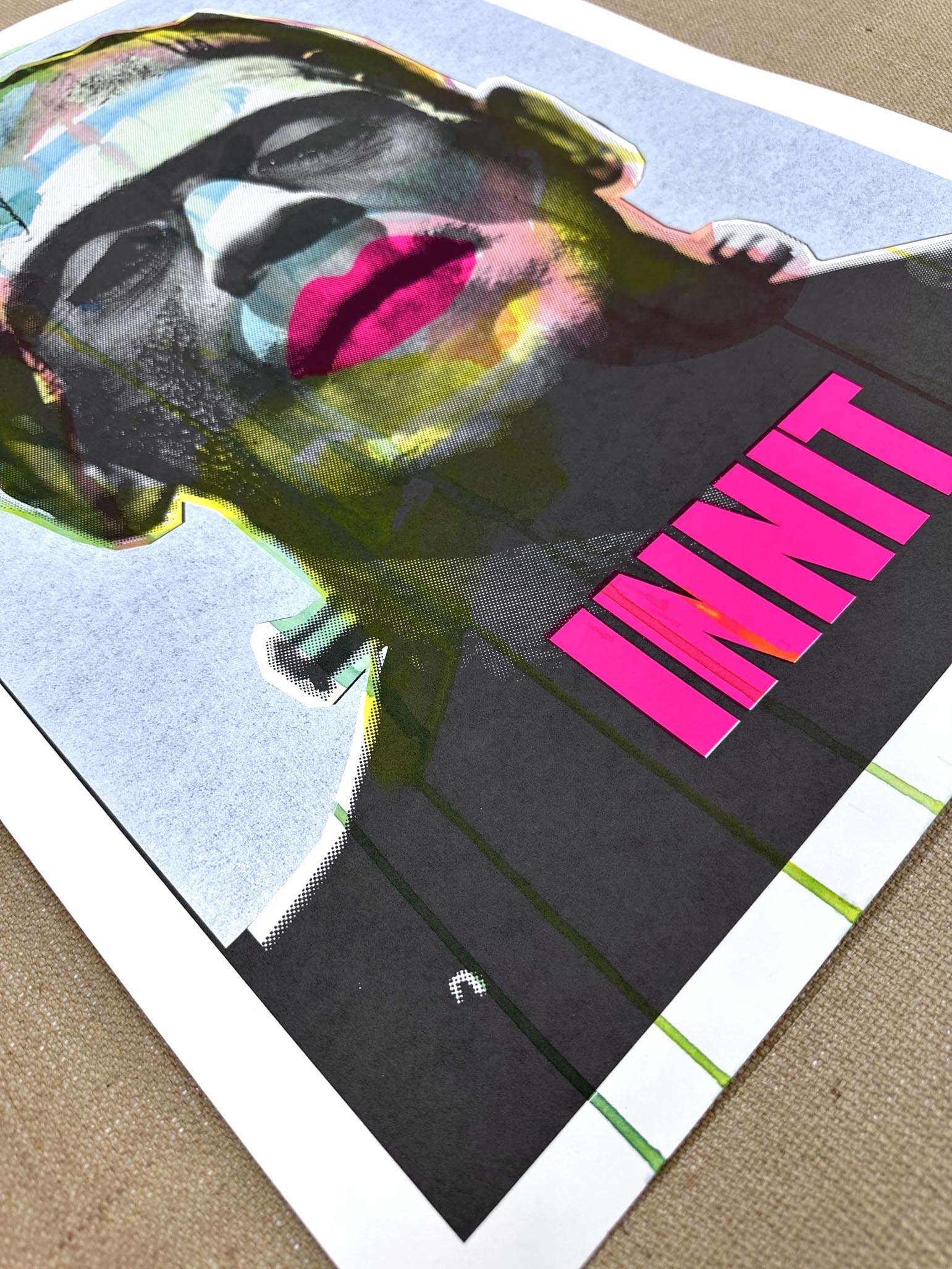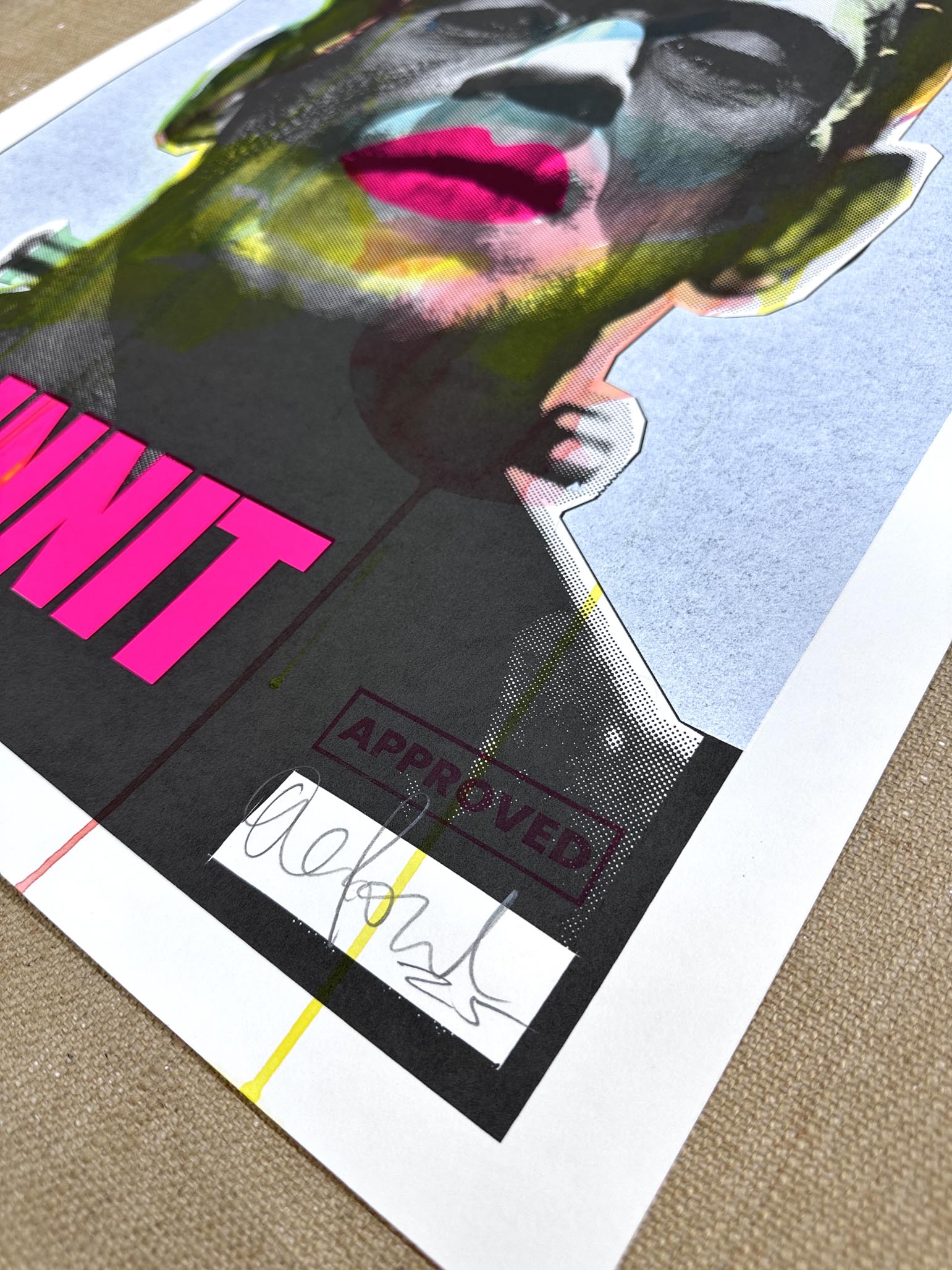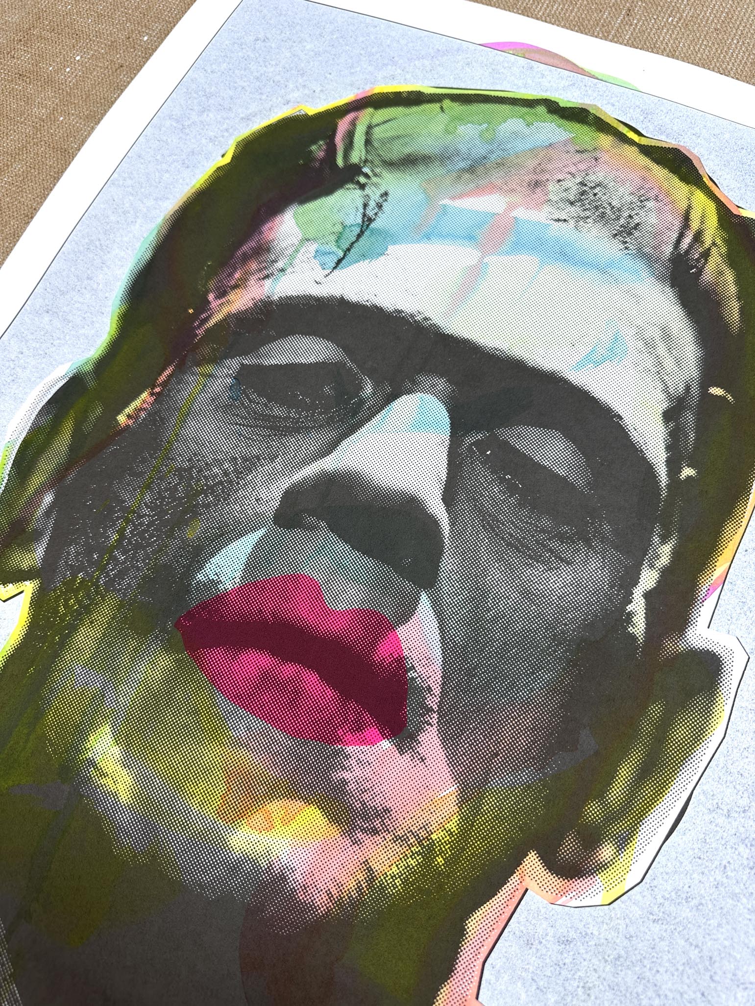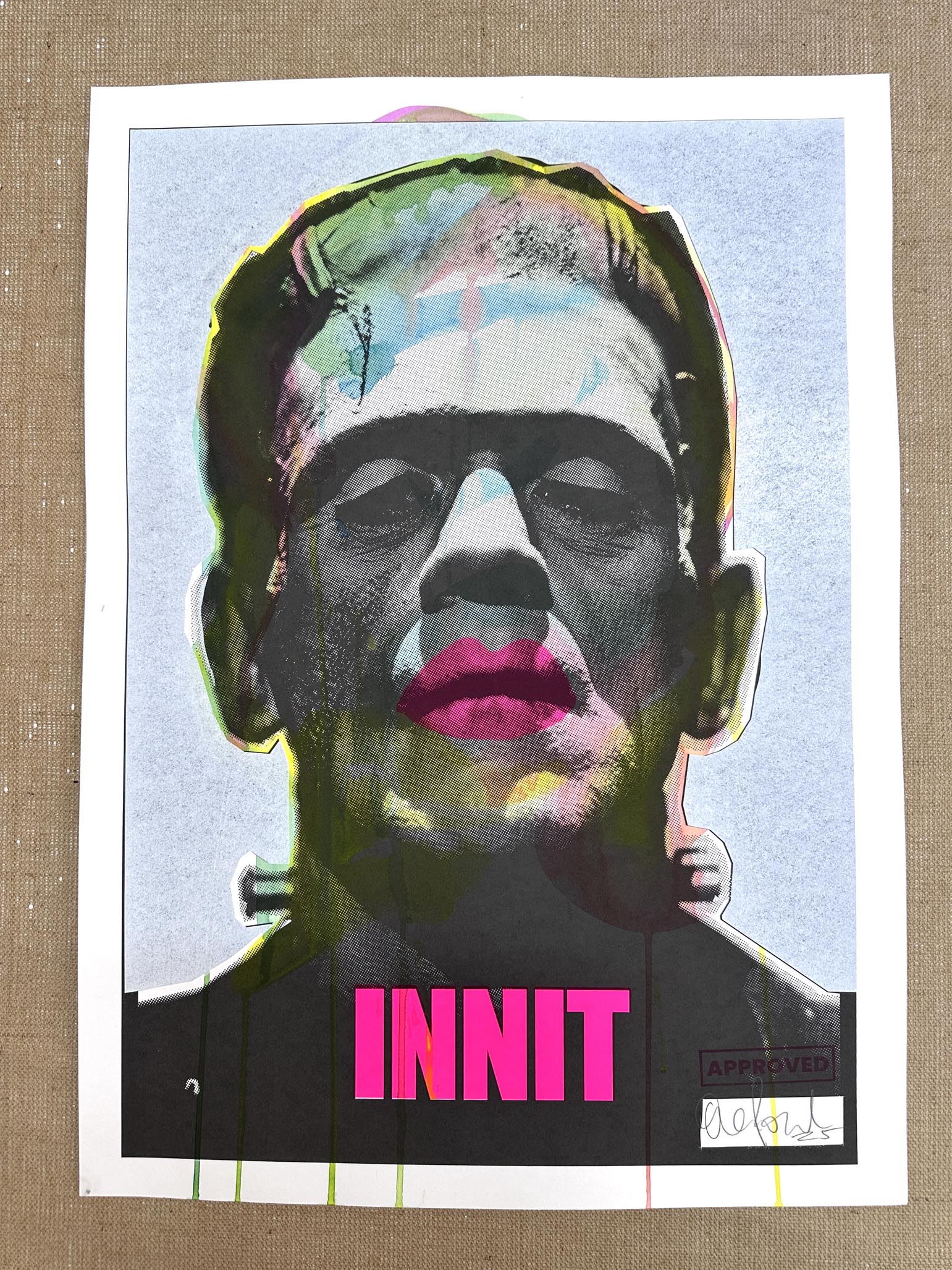 One-off original screenprint with ink wash, gloss, and matt finishes. 490 x 520mm on cotton rag paper. Signed by artist.
