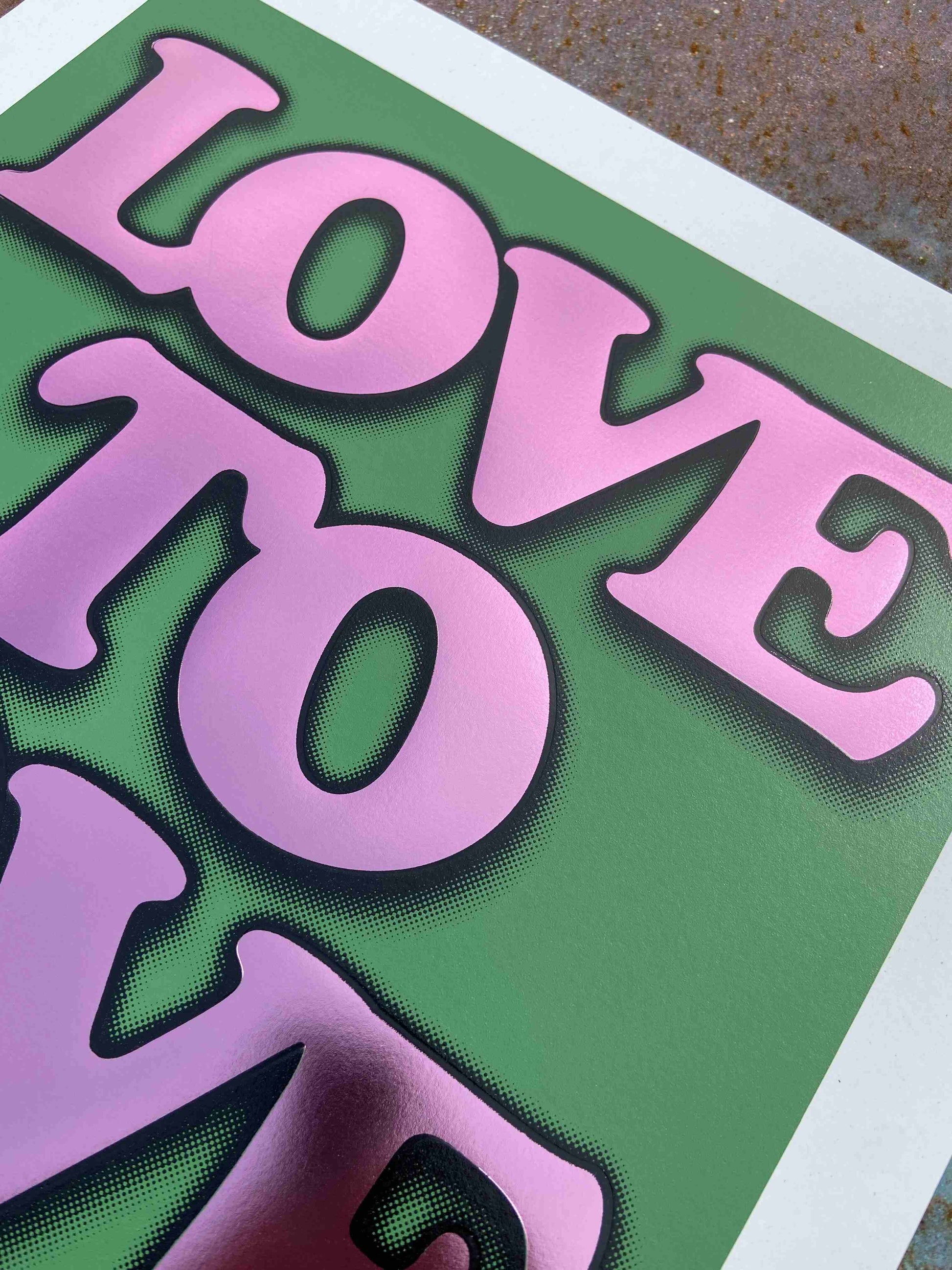 Love To Love...Green - A 2-layer screenprint with metallic hot foil stamp. Part of the Love To Love series.