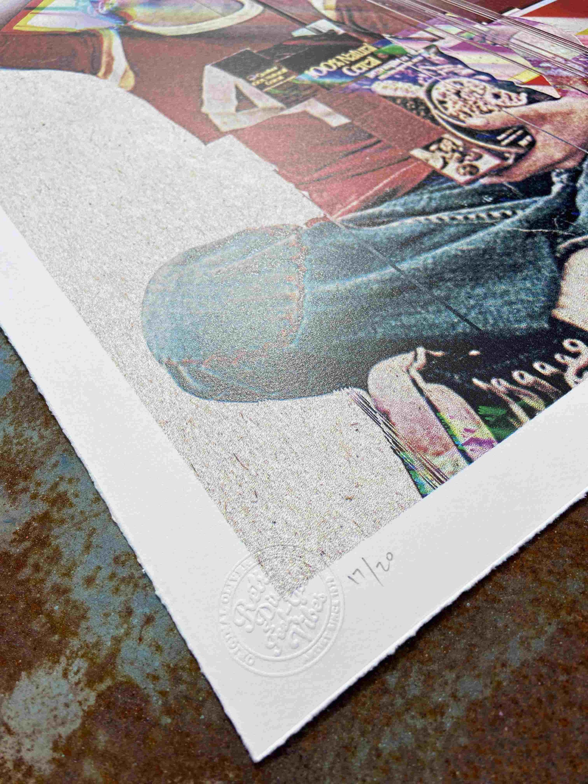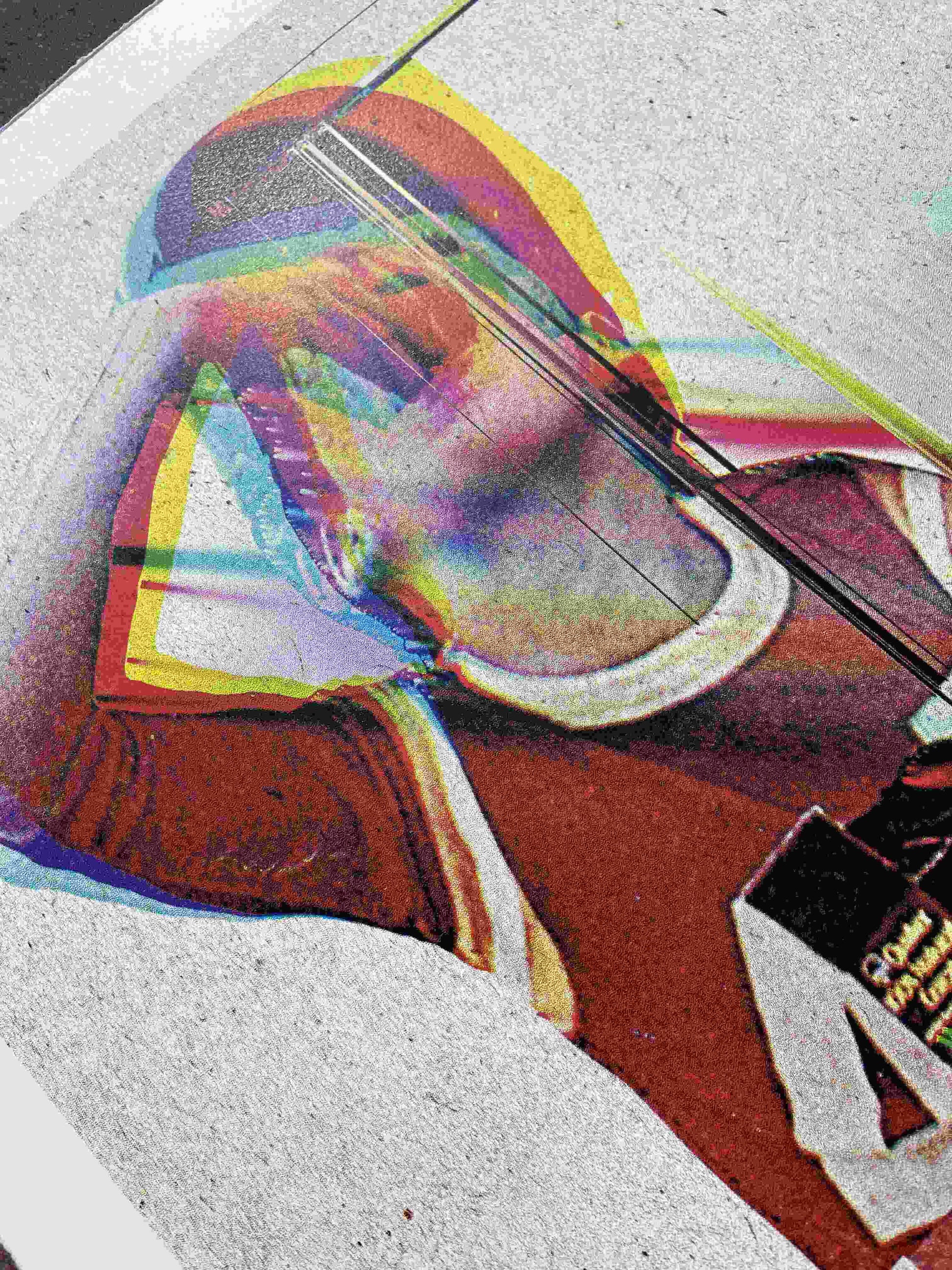 Quaker CMYK Dither Screenprint - A 4-layer stochastic CMYK screenprint. Technical process meets vintage imagery.