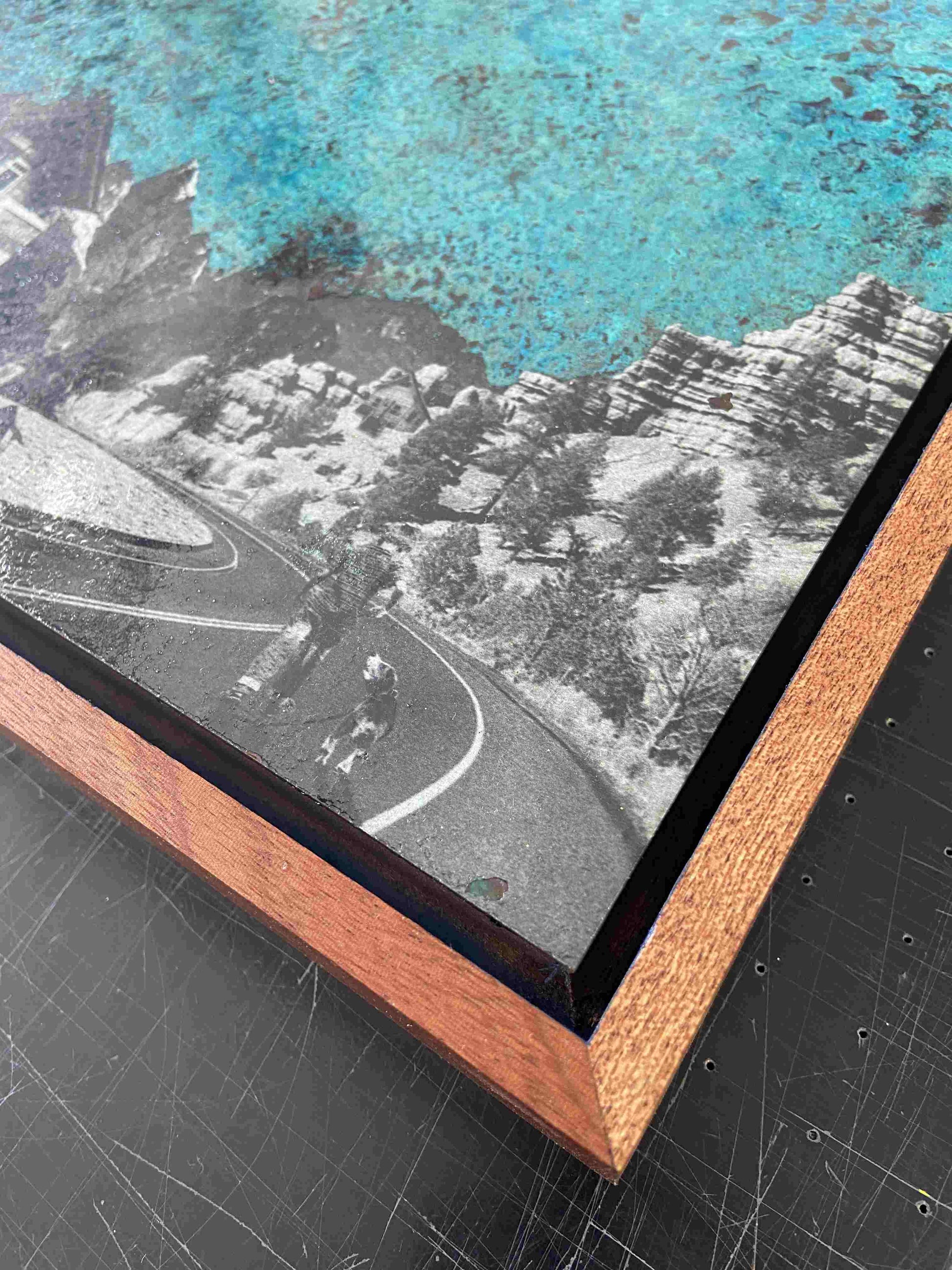 The Road B - Original 5-layer print on oxidised copper with varnish overlays. Framed and ready to hang. One of a kind.