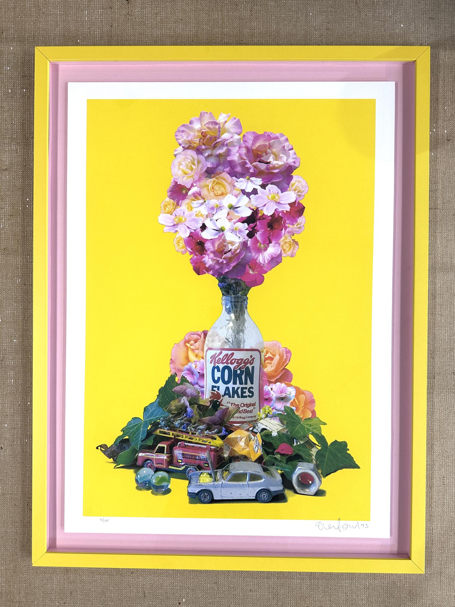 Yellow Frame and Pink Inlay / Glass front / Float Mounted