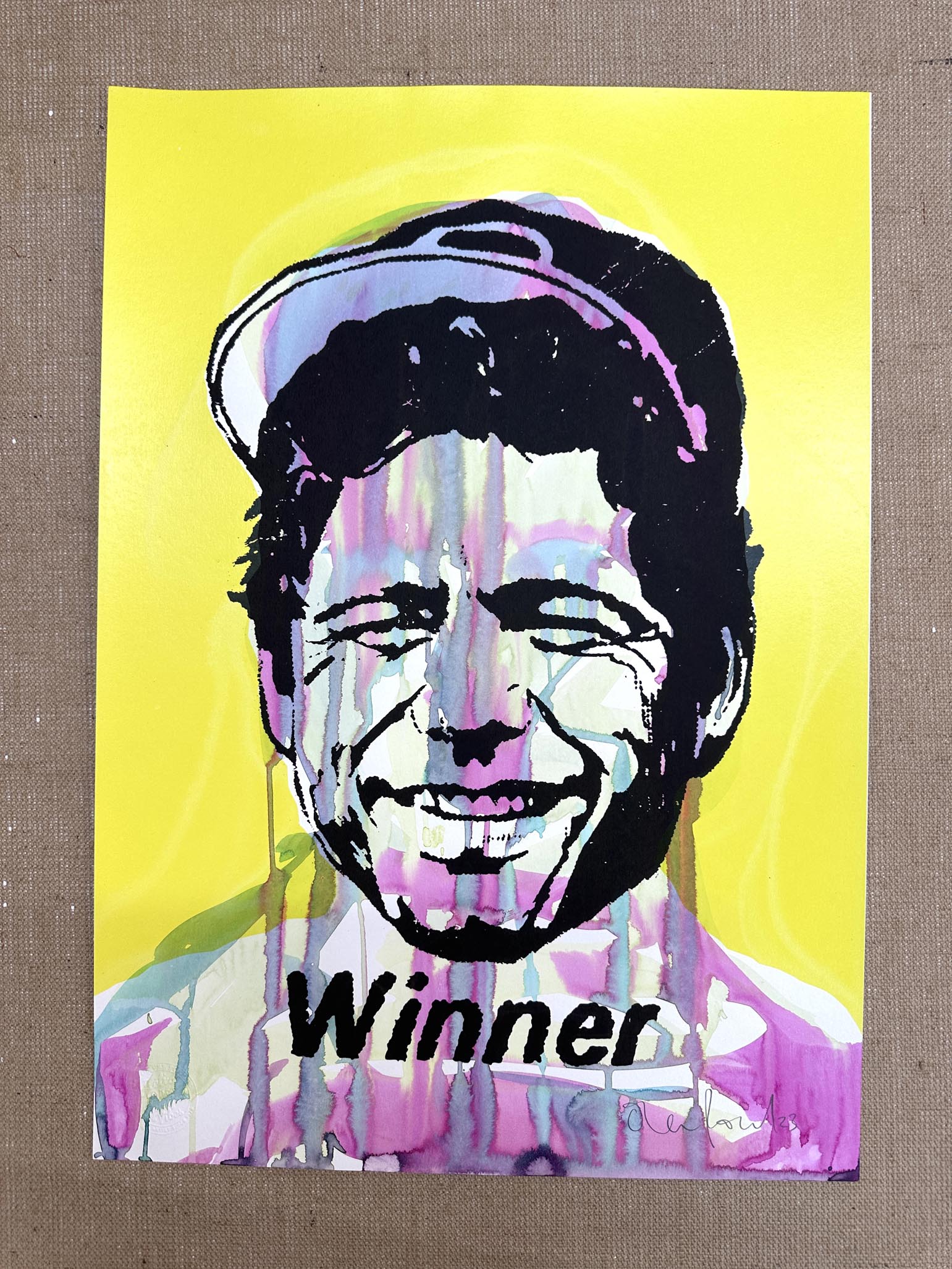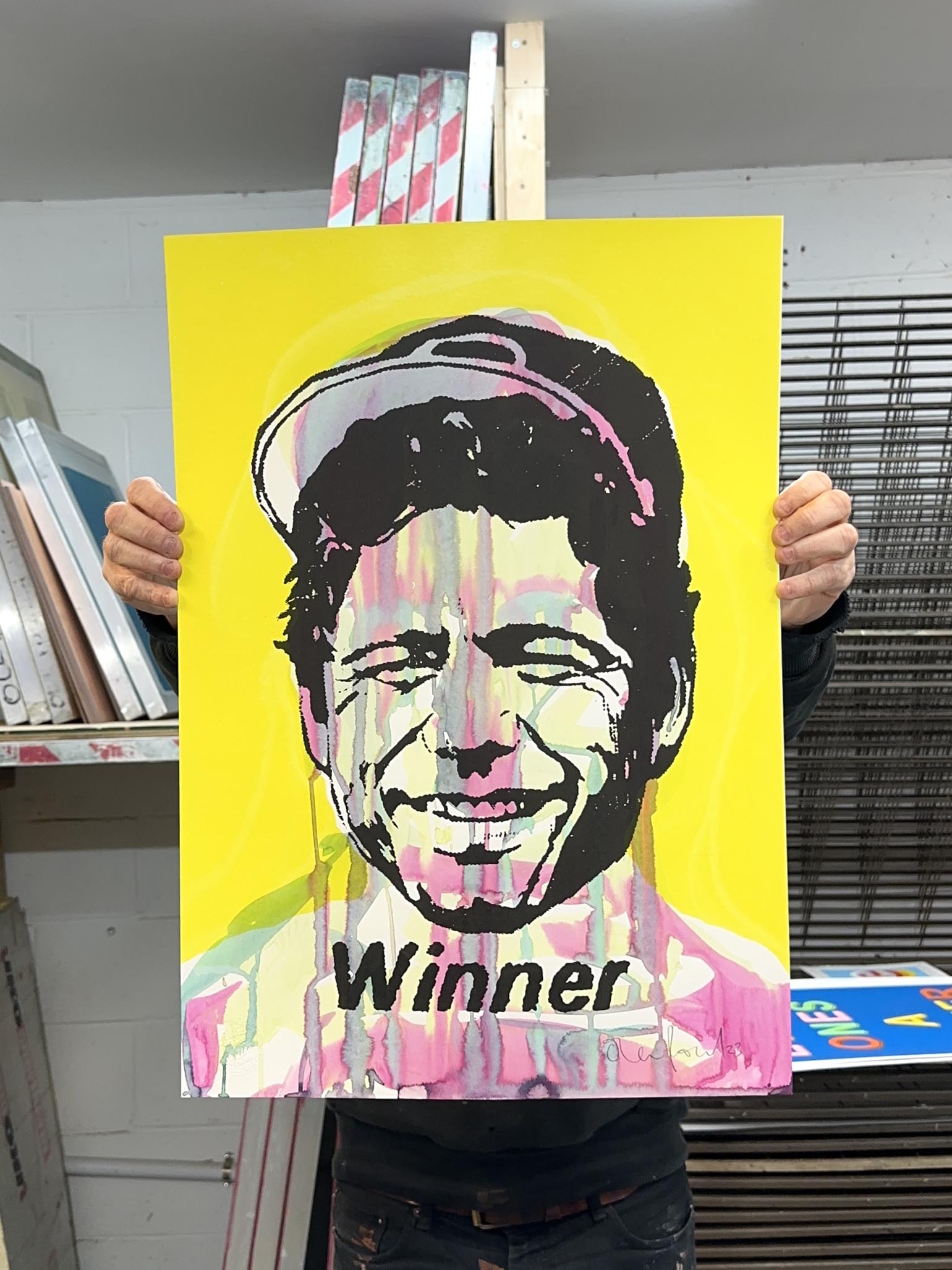 2-layer hand-pulled screenprint with ink wash background. Original. A2 420 x 594mm, signed and embossed. Sold unframed.